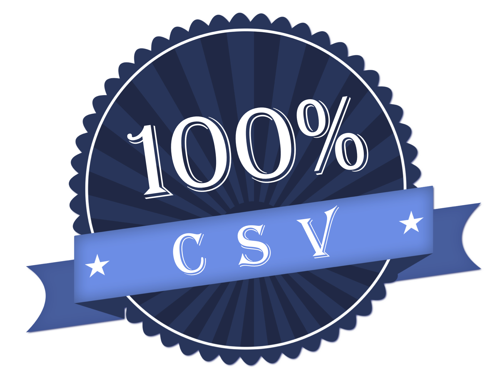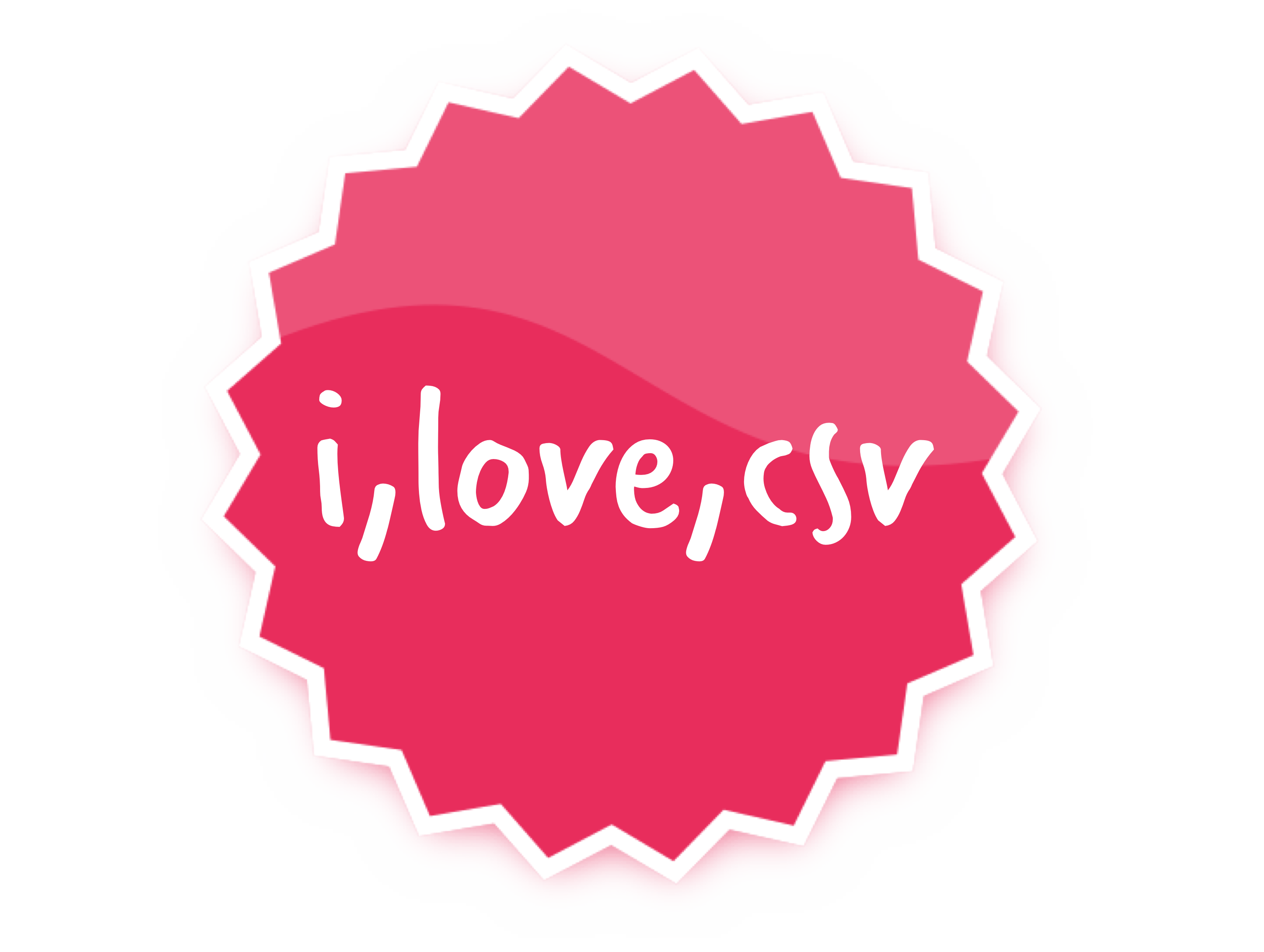 If you want to show your affection for the simple and universal CSV file format, we’re providing some badges for you. You may use the images on this page for whatever you want – on your website for example. Or how about a t-shirt or put it on a mug?